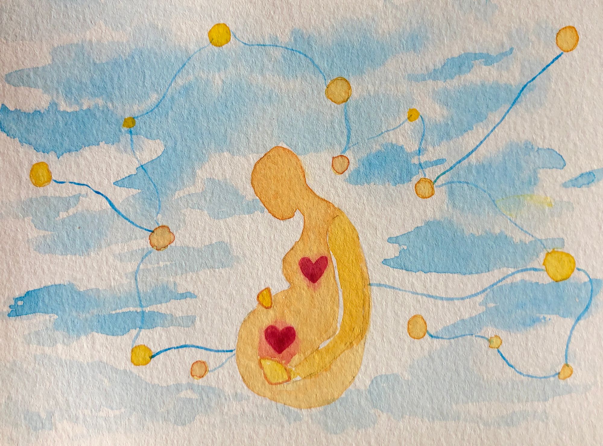 During my pregnancy, I connect with my feelings and thoughts by creating images. I honor this sacred journey with my baby and partner through creating and connecting. These images come to me in my dreams or the images unfold as I create.